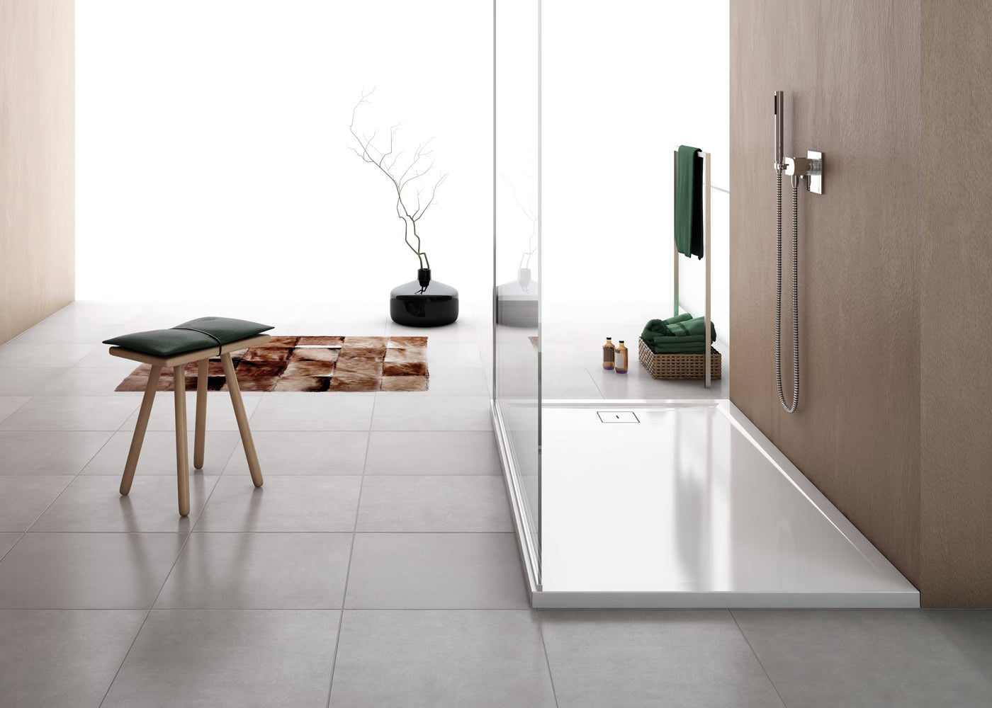 LIVADA, W20AS cădiță de duș RONAL, asimetrică din marmură sintetică, cu scurgere pe partea scurtă