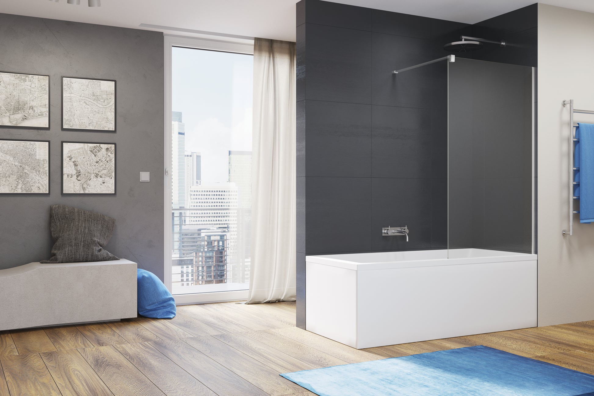 EASY STR4P6B - Paravan pentru cadă de baie dintr-o bucată, sticlă transparentă - inclus stabilizatorul de colț crom lucios