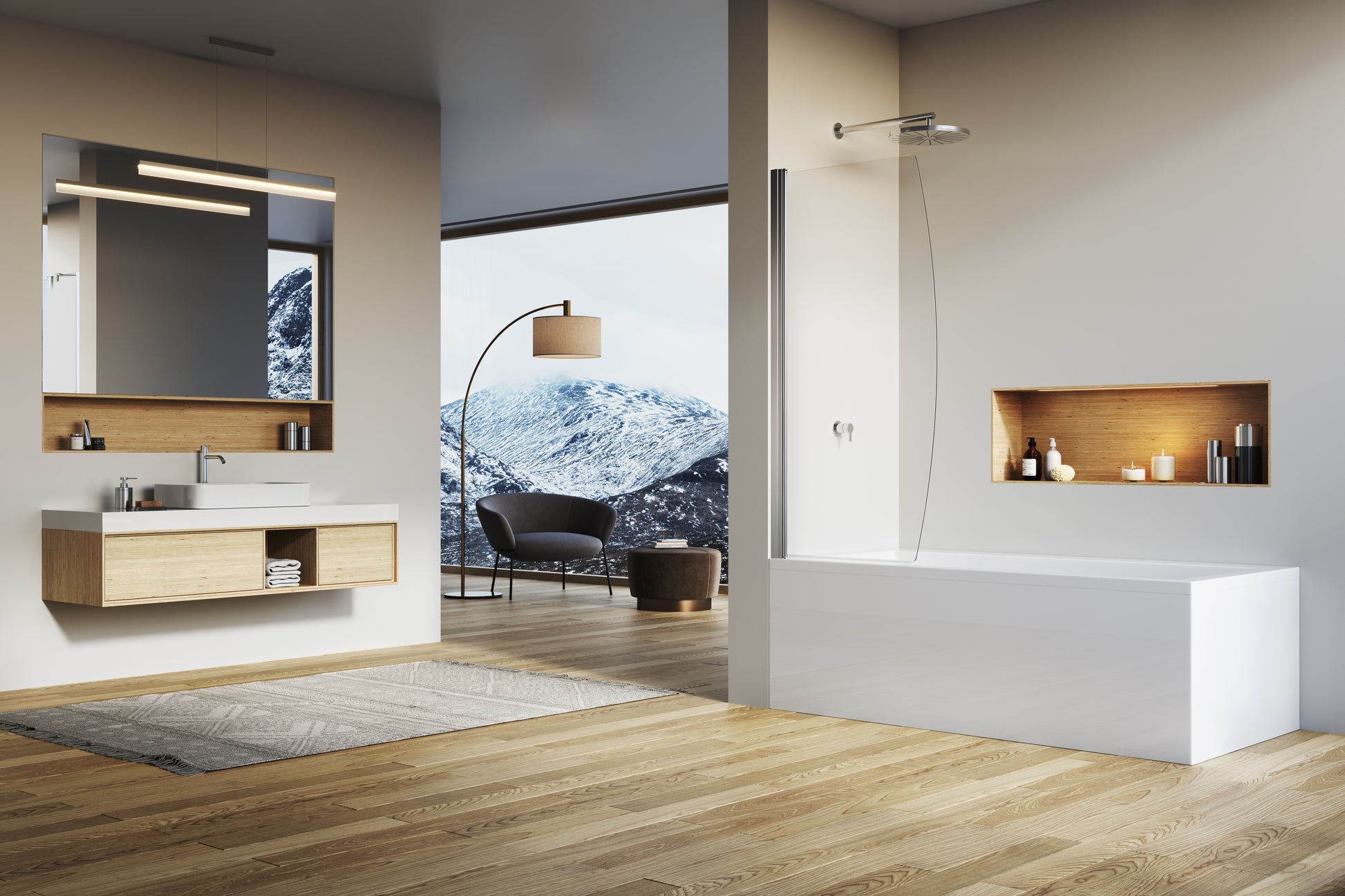 SOLINO SOLB1 - Paravan batant pentru cadă de baie dintr-o bucată, sticlă transparentă - deschidere 180°